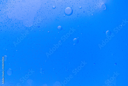 Abstract Underwater air bubbles, round shape, water frozen in time, blue background, clean backdrop texture