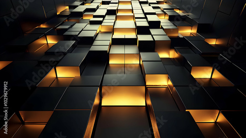 Abstract 3D Background with Glowing Golden Cubes