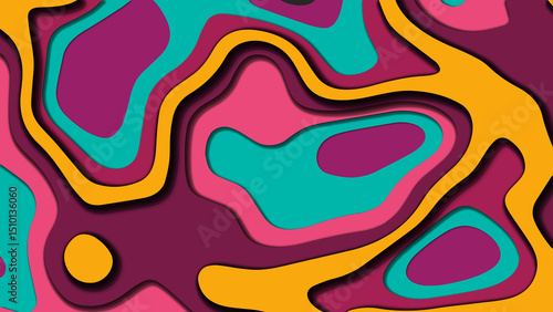 Abstract 3D background with paper cut shapes. Vector design layout for business presentations, flyers, posters and invitations. Colorful engraving art - blue, yellow and purple