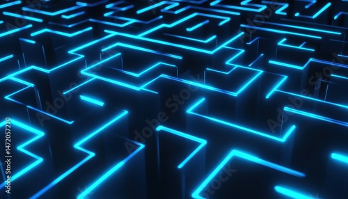 labyrinth, abstract, blue, neon, glowing, line, path, three-dimensional, complex, intricate, network, technology, digital, structure, geometric, pattern, background, design, graphic, illustration, modern, futuristic, science, fantasy, virtual, reality, artificial, intelligence, innovation, datum, algorithm, coding, cyber, space, challenge, puzzle, solution, navigation, journey, forever, endless, labyrinth, game