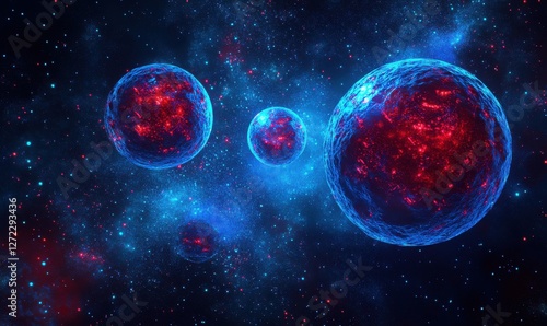 abstract, three-dimensional, concept, glowing, particle, floating, space, vibrant, blue, red, hue, creating, dynamic, futuristic, theme, clean, bold, design, advanced, tech, vibe, science, astronomy, galaxy, nebula, background, sky, universe, star, cosmos, way, planet, fantasy, glow, plasma, deep, light, night, outer, illustration, black, forever