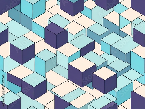 Abstract 3D Cube Pattern: A Symphony of Blue and Purple Geometric Shapes