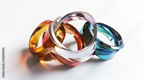 Abstract 3D metallic rings with layered geometry, shiny and reflective futuristic style