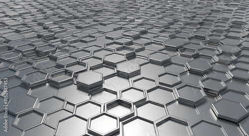 hexagon, abstract, background, metallic, silver, geometric, three-dimensional, futuristic, technology, pattern, chrome, texture, modern, industrial, digital, innovation, science, structure, network, connection, sleek, clean, minimalist, perspective, shiny, polished, steel, aluminium, grey, surface, honeycomb, grid, render, illustration, wallpaper, architecture, design, tech