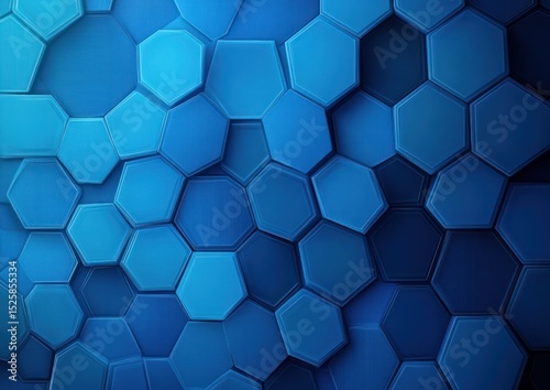 Abstract 3d pattern of interconnected hexagons in varying shades of blue creating a modern geometric texture with depth and smooth surfaces