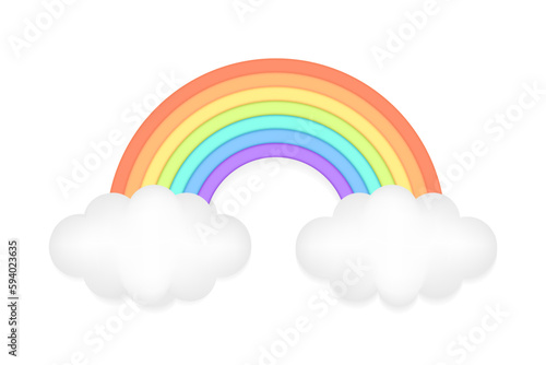 Abstract 3D Rainbow Arch with clouds Vector Illustration with Clay Effect. Cute Design Element for Decorative Concept. Use as Sign, Icon, or Graphic for Happy and Creative Designs. Isolated on white