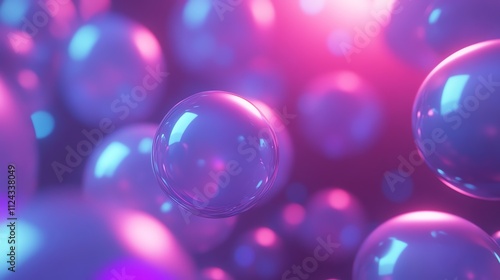 Abstract 3D render of glowing iridescent spheres.