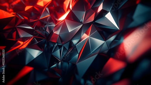 Abstract 3d rendering of chaotic surface. Contemporary background with futuristic polygonal shape. Distorted low poly object with sharp lines.