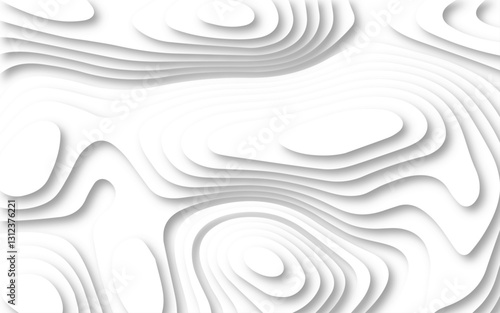 Abstract 3d wavy line paper cut white background. Topographic canyon geometric map relief texture with curved layers and shadow. geometric background overlap layer.