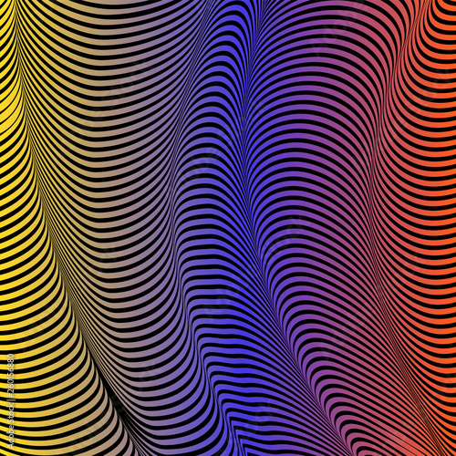 Abstract acid color wavy background, optical art, opart striped. Neon gradient