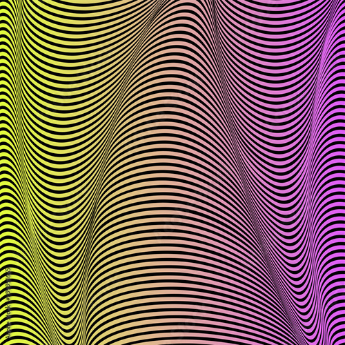 Abstract acid color wavy background, optical art, opart striped. Neon gradient