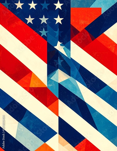 flag, american, abstract, geometric, patriotic, stripes, star, red, blue, white, vibrant, colourful, design, graphic, pattern, texture, modern, art, us, illustration, shape, digital, poster, bold, composition, layered