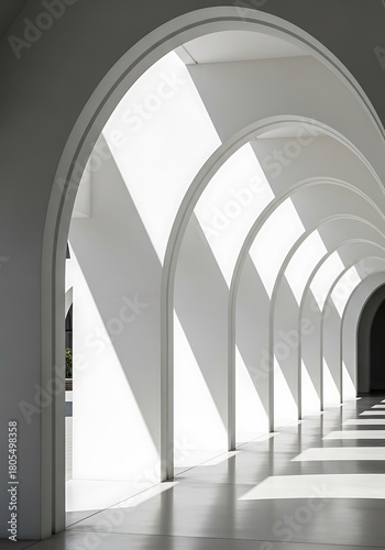 Abstract Architectural Symmetry White Arches and Striking Light Patterns