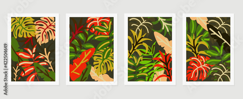 Abstract art nature background vector. Modern shape line art wallpaper. Boho foliage botanical leaves watercolor texture design for home deco, wall art, social media post and story background.