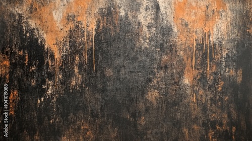 Abstract art painting in black, orange, brown, and white colors