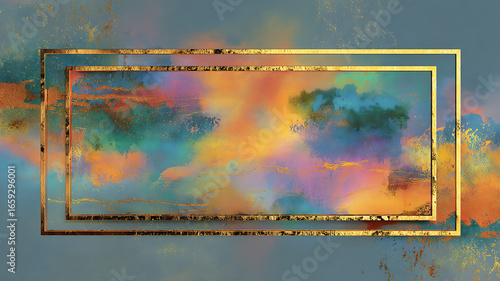 Abstract Art with Golden Frame and Colorful Explosion
