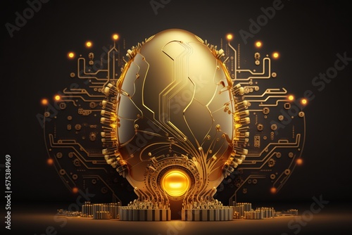 abstract artificial intelligence gold egg background data center created with Generative AI technology