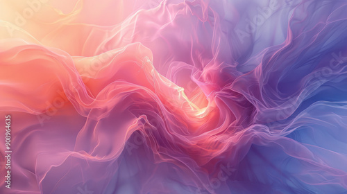 Abstract background, Translucent pastel swirling shape dominates the center, surrounded by a soft gradient background. The edges gently merge into the atmosphere, creating a sense