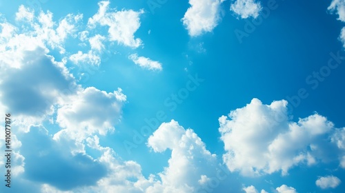 Abstract background blurred fusion minimal. A serene sky filled with fluffy white clouds against a bright blue backdrop, creating a peaceful and uplifting atmosphere.