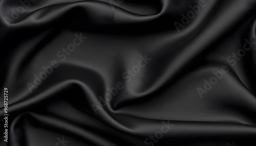 Abstract background luxury cloth or liquid wave. Smooth, flowing black satin fabric with soft folds and highlights