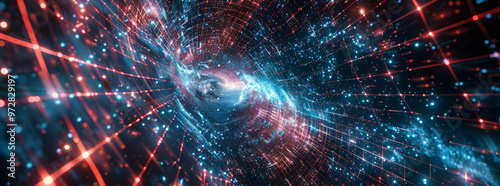 Abstract background mesh design. Computer signals run through space.