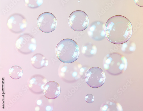 Abstract background of glowing soap bubbles floating in a soft pastel gradient