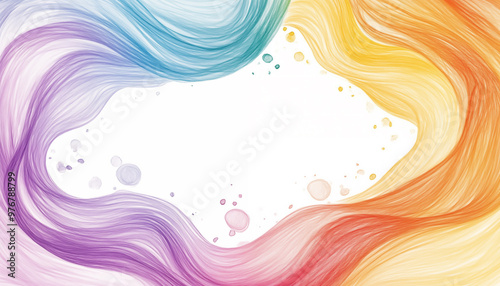 Abstract background of multicolored wavy lines drawn with pencil with empty space for text in the center.
