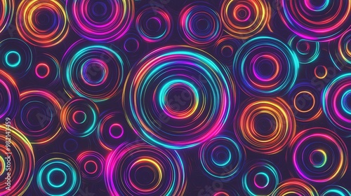 illustration, abstract, neon, circle, background, pattern, light, colourful, bright, glow, design, geometric, shape, art, digital artwork, modern, technology, futuristic, hallucinogen, graphic