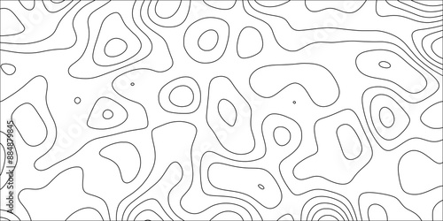 Abstract background of the topographic contours map with geographic line map. Geographic contour map grid texture. Modern design with White topographic wavy pattern design.