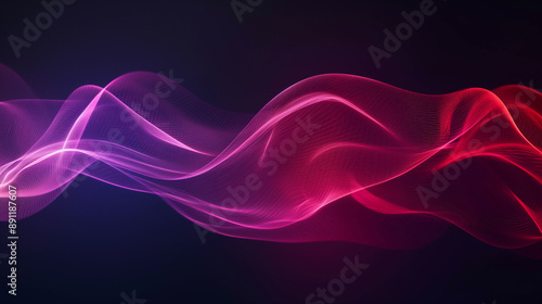 Abstract background. One beautiful wave of red-lilac color in the center on a dark background, minimalism. Advertising banner.