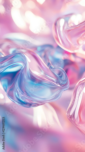 Abstract background with a glossy surface. The colors is light blue and pink shades. These 3d figures make a trendy and creative composition, perfect for use as a design element, wallpaper, or backdro