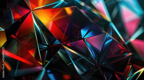 Abstract background with colorful shapes and blurred edges, dark colors, futuristic design, light reflection on the surface of metal materia