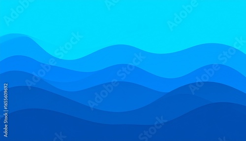 Abstract background with flowing blue waves and layered curves. Modern minimalist graphic design illustrating a calm sea or ocean landscape.