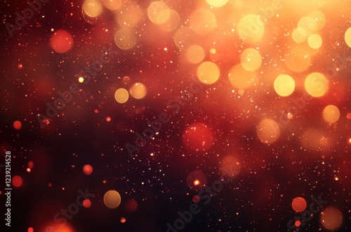 Abstract Background with Glowing Particles and Bokeh Effect in Warm Tones of Red, Orange, and Gold for Creative Projects and Design Use