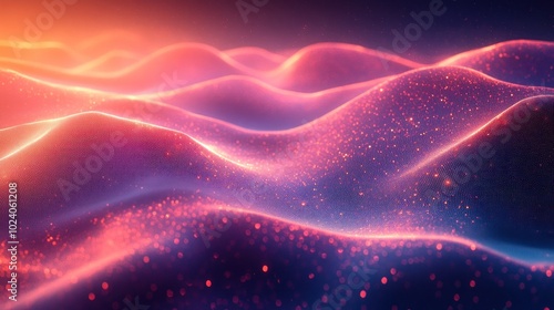 Abstract background with glowing, undulating, wave-like surface in pink, orange, and blue.
