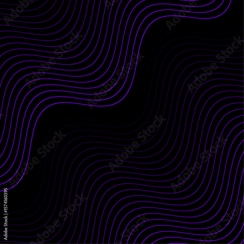 Abstract background with lines and waves. Banner. Element for design isolated on black. Vector background for brochure, booklet, flyer, poster. Purple and black gradient. Blue, dark, night