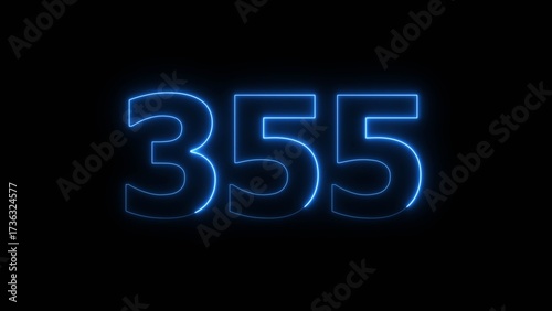 Abstract beautiful blue neon 355 number illustration background. Glowing neon countdown number icon background 4k.