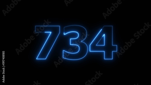 Abstract beautiful blue neon 734 number illustration background 4K. Glowing neon countdown number icon background.
