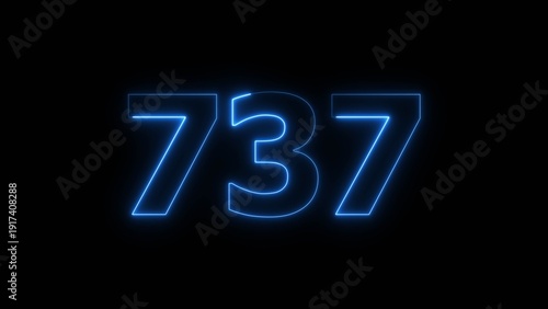 Abstract beautiful blue neon 737 number illustration background 4K. Glowing neon countdown number icon background.