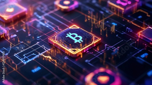 Abstract Bitcoin Cryptocurrency Digital Circuit Board Technology Background Neon Glow Illustration Futuristic Blockchain Finance Network Design
