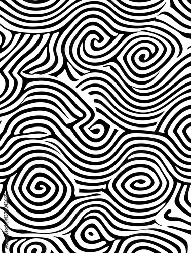 abstract, background, black, white, line, swirl, pattern, texture, design, graphic, art, illustration, monochrome, seamless, wave, curve, spiral, vortex, hypnotic, optical, illusion, modern, contemporary, geometric, style, trendy, minimalist, elegant, sophisticated, vintage, retro, hallucinogen, artistic, creative, digital, print, fabric, wallpaper, textile, wrapping, paper, surface, decor, template