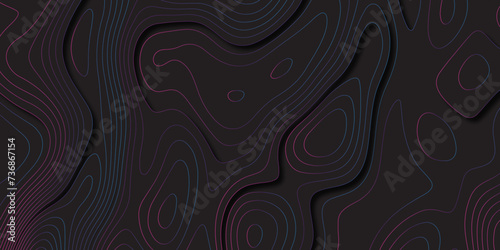 Abstract black colorful gradient Topographic line map pattern background with shadow. Contour elevation topographic and textured Background Modern design with black background topographic wavy patte.