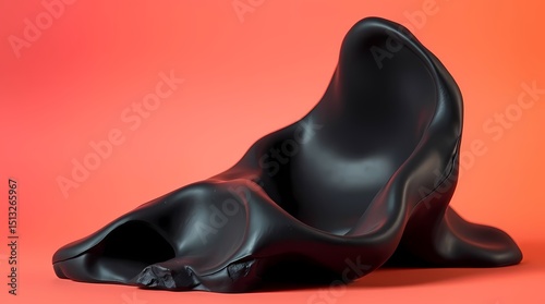 abstract, black, draped, form, shape, fluid, modern, design, object, sculpture, contemporary, minimal, geometric, flowing, organic, smooth, glossy, three-dimensional, sculpted, piece, studio, lighting, coral, background, colours, orange, red, surface, texture, material, composition, structure, dark, shiny, minimalist, art, concept, modernist, conceptual, drapery, curved, unique, aesthetic