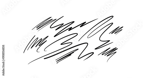 Abstract black scribbles and chaotic lines on white background.