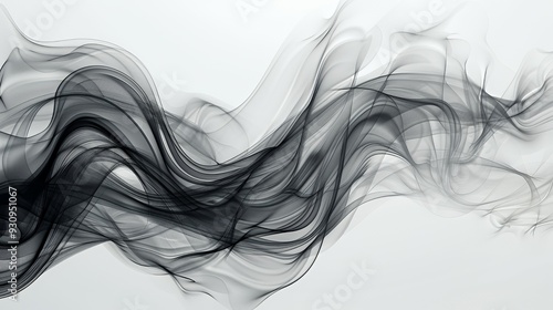 Abstract black smoke waves flowing on a white background.