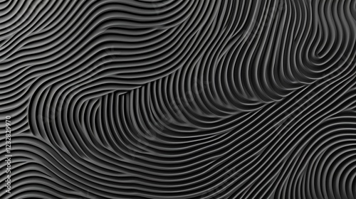 abstract, black, wave, pattern, design, texture, line, curve, stripes, ripple, flowing, smooth, sleek, elegant, modern, contemporary, background, graphic, art, illustration, wallpaper, surface, material, style, geometric, dimensional, depth, shadow, contrast, monochrome, greyscale, dark, shade, tone, visual, aesthetic, form, shape, movement, dynamic, organic, digital, rendering, three-dimensional