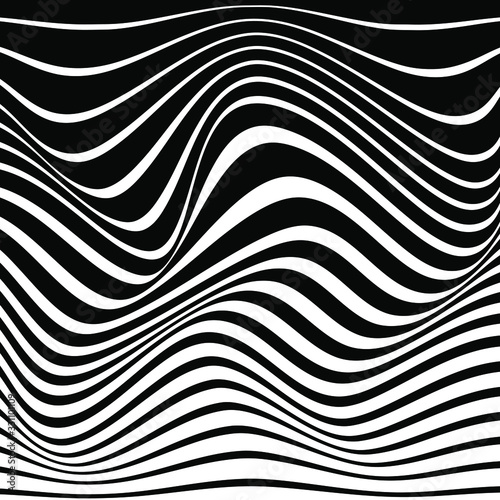 Abstract black wavy distorted stripes. Geometric art. Abstract monochrome background. Design element for logo, tattoo, prints, web, template, and textile pattern