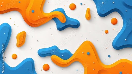 Abstract Blue and Orange Fluid Shapes Paper Art on White Background