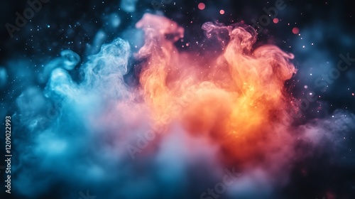 smoke, abstract, orange, blue, red, colours, texture, background, fire, spark, particle, dark, light, vibrant, contrast, energy, mystical, magical, fantasy, atmosphere, cosmic, nebula, swirling, cloud, vapour, steam, haze, dust, glow, illuminated, bright, shadow, depth, gradient, blend, aethereal, dreamy, artistic, design, element, image, photo
