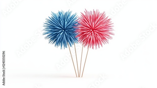 Abstract Blue and Red Pixelated Pom Poms on White